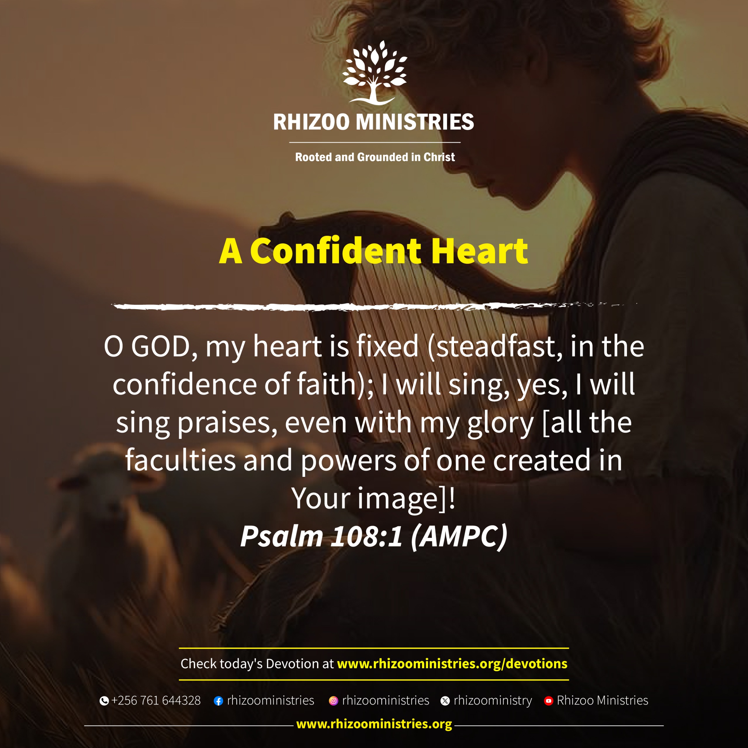 O GOD, my heart is fixed (steadfast, in the confidence of faith); I will sing, yes, I will sing praises, even with my glory [all the faculties and powers of one created in Your image]! Psalm 108:1 (AMPC)