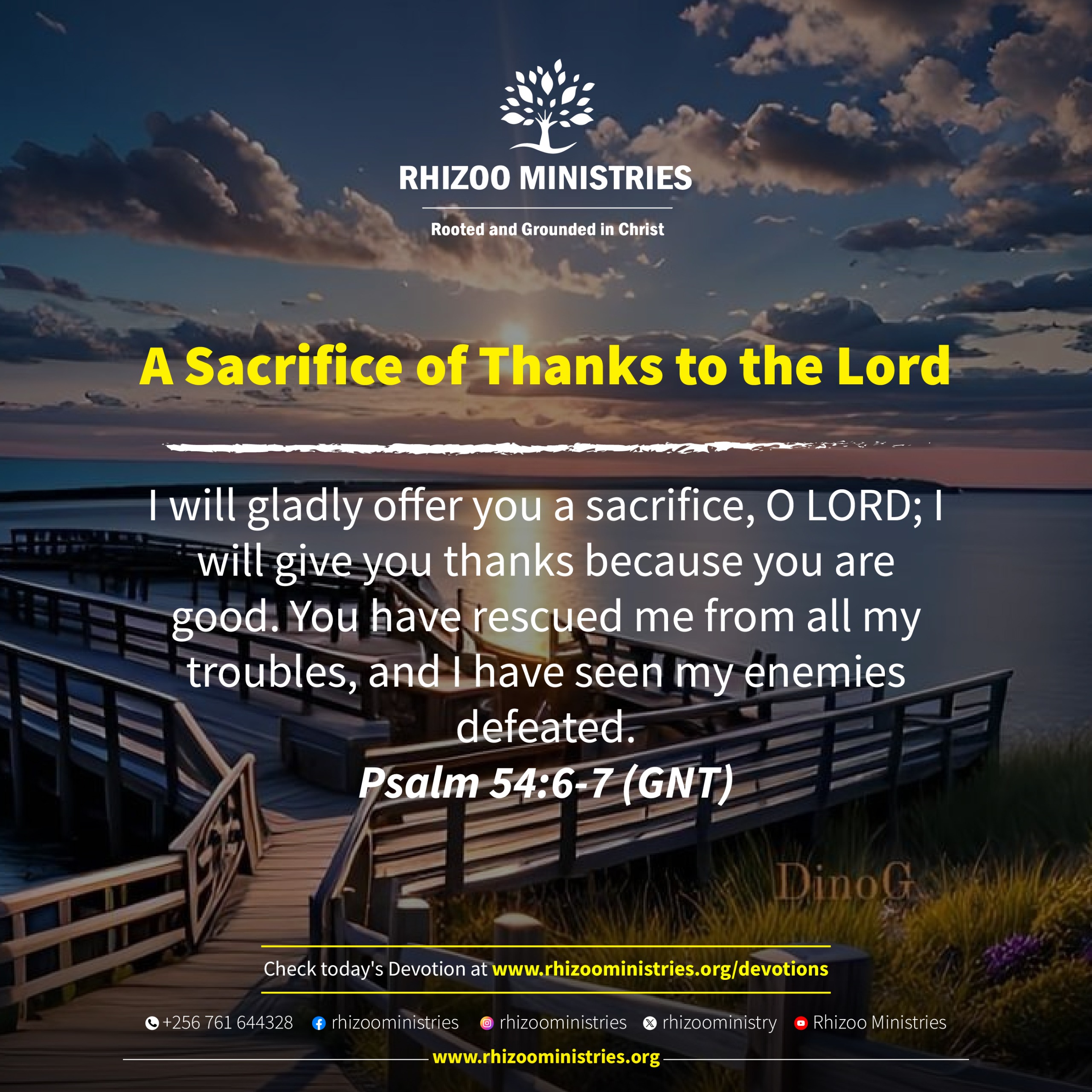 I will gladly offer you a sacrifice, O LORD; I will give you thanks because you are good. You have rescued me from all my troubles, and I have seen my enemies defeated. Psalm 54:6-7 (GNT)