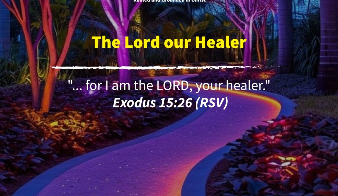 “… for I am the LORD, your healer.” Exodus 15:26 (RSV) Healing and health are God’s will for us. One of God’s Names revealing His character is Jehovah Rapha meaning