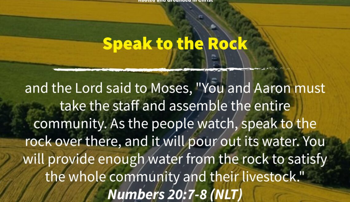 ..and the Lord said to Moses, “You and Aaron must take the staff and assemble the entire community. As the people watch, speak to the rock over there, and it