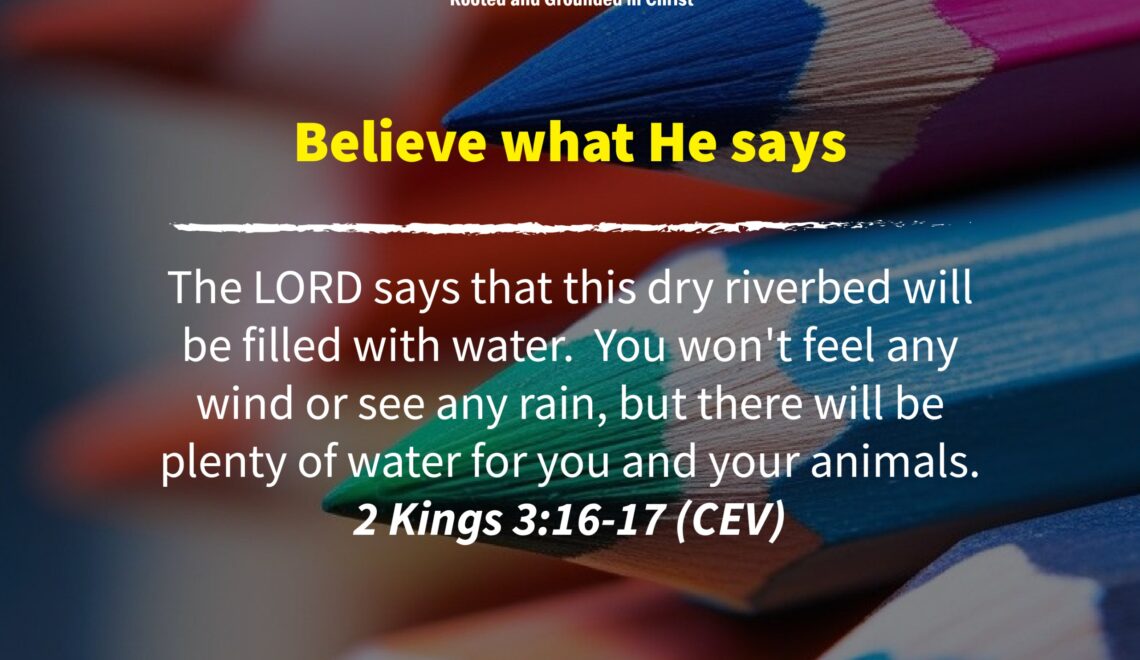 The LORD says that this dry riverbed will be filled with water. You won’t feel any wind or see any rain, but there will be plenty of water for you