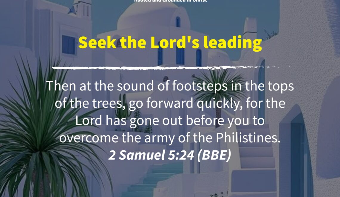 Then at the sound of footsteps in the tops of the trees, go forward quickly, for the Lord has gone out before you to overcome the army of the Philistines.