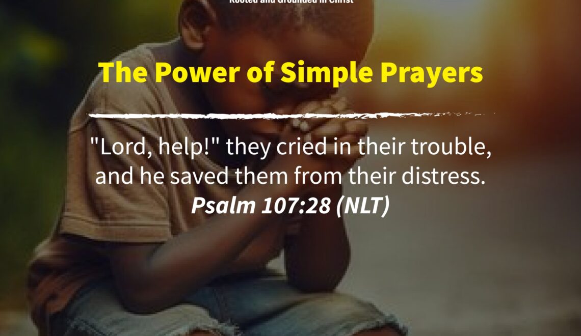 “Lord help!” they cried in their trouble, and he saved them from their distress. Psalm 107:28 (NLT) Results yielding prayer isn’t about length, volume, or skill but simplicity, being specific