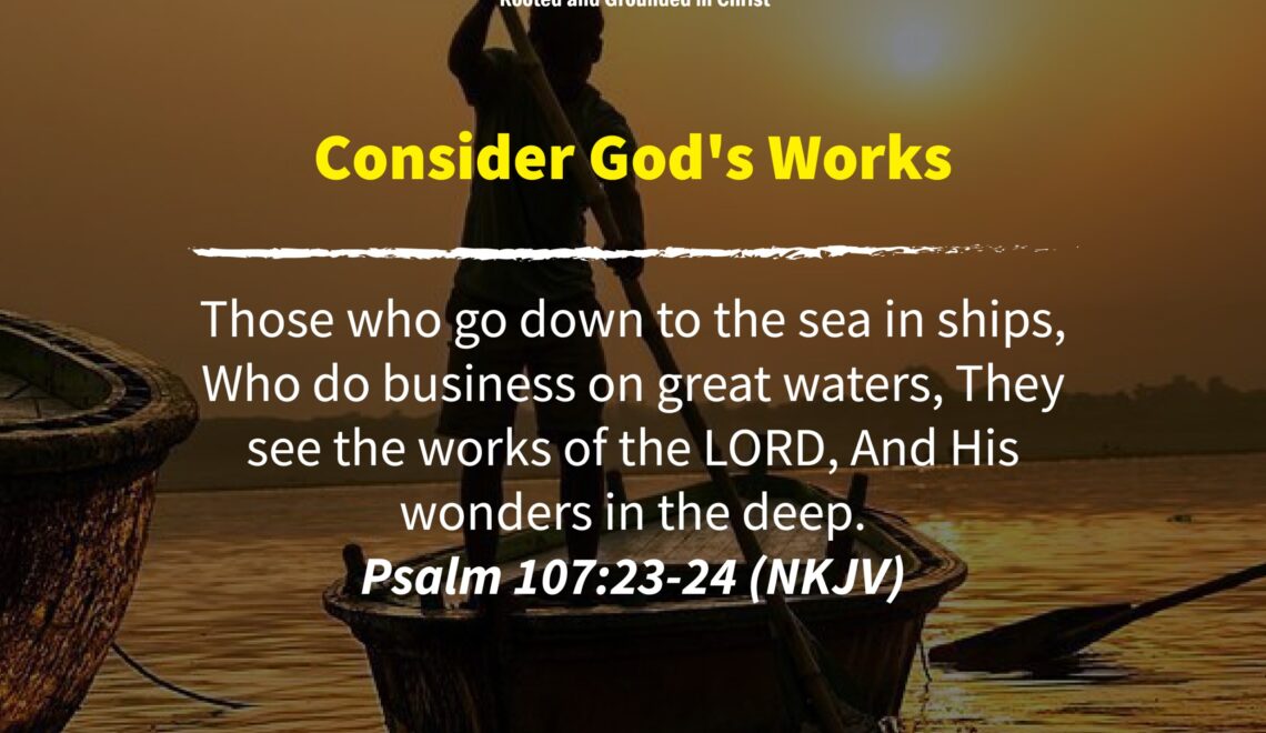 Those who go down to the sea in ships, Who do business on great waters, They see the works of the LORD, And His wonders in the deep. Psalm 107:23-24