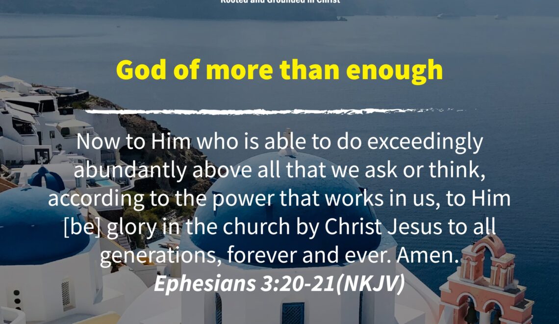 Now to Him who is able to do exceedingly abundantly above all that we ask or think, according to the power that works in us, to Him [be] glory in