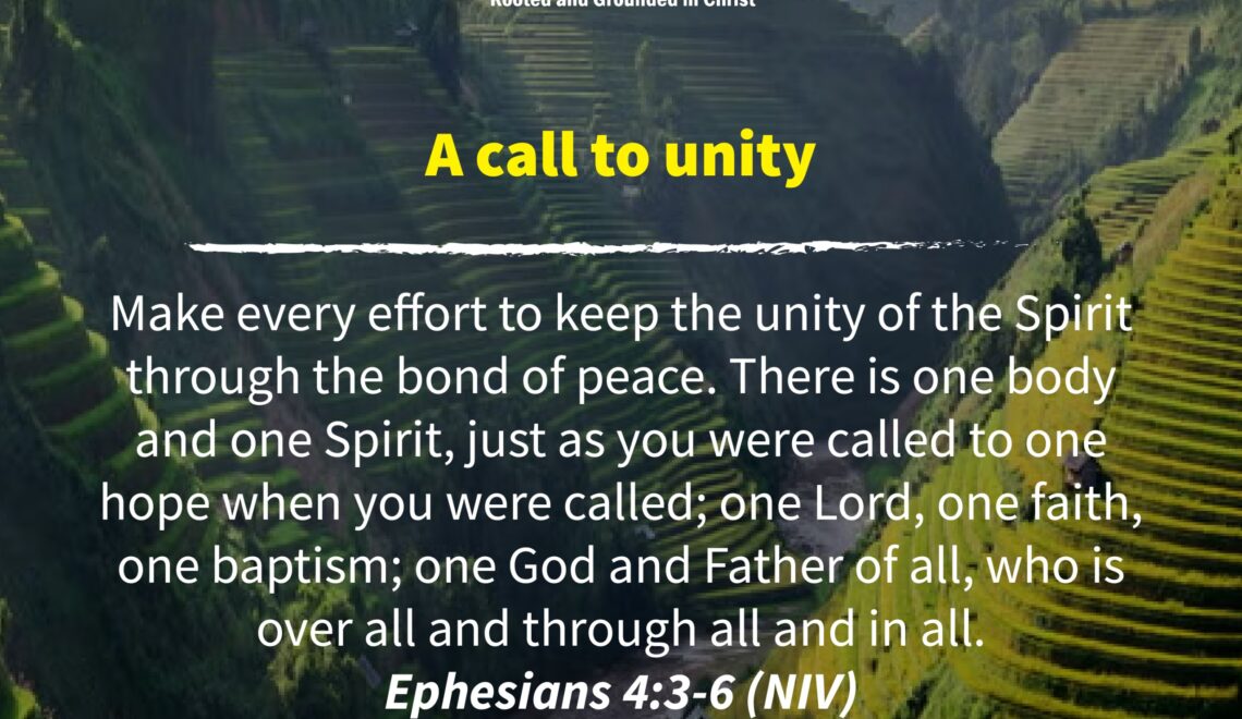 Make every effort to keep the unity of the Spirit through the bond of peace. There is one body and one Spirit, just as you were called to one hope