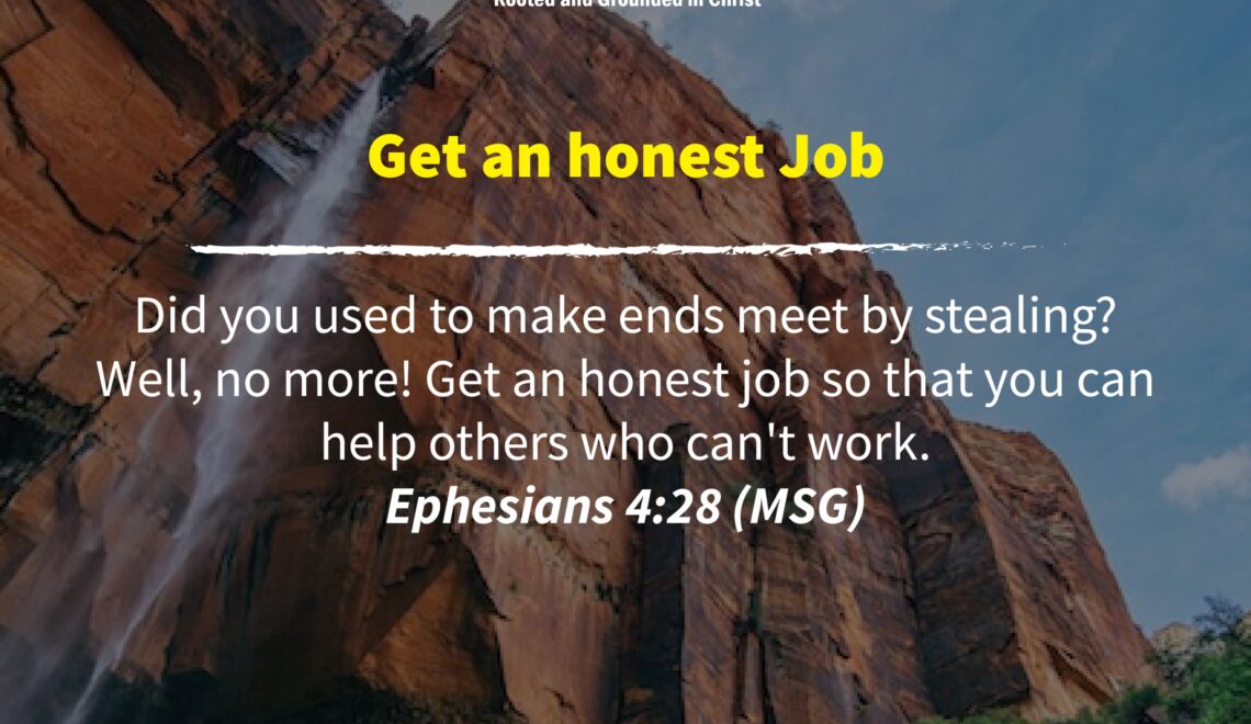 Did you used to make ends meet by stealing? Well, no more! Get an honest job so that you can help others who can’t work Ephesians 4:28 (MSG). Stealing isn’t