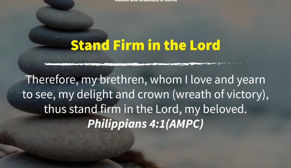 Therefore, my brethren, whom I love and yearn to see, my delight and crown (wreath of victory), thus stand firm in the Lord, my beloved. Philippians 4:1(AMPC) Our standing, our