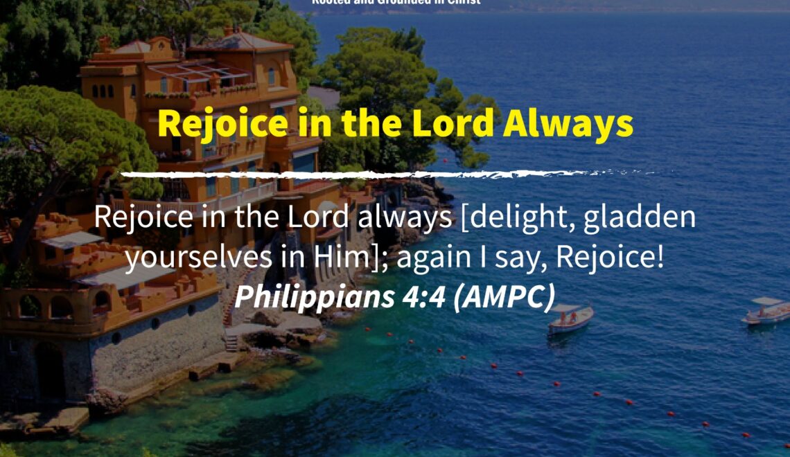 Rejoice in the Lord always [delight, gladden yourselves in Him]; again I say, Rejoice! Philippians 4:4 (AMPC) Rejoicing in the Lord always is an overflow of union and communion with