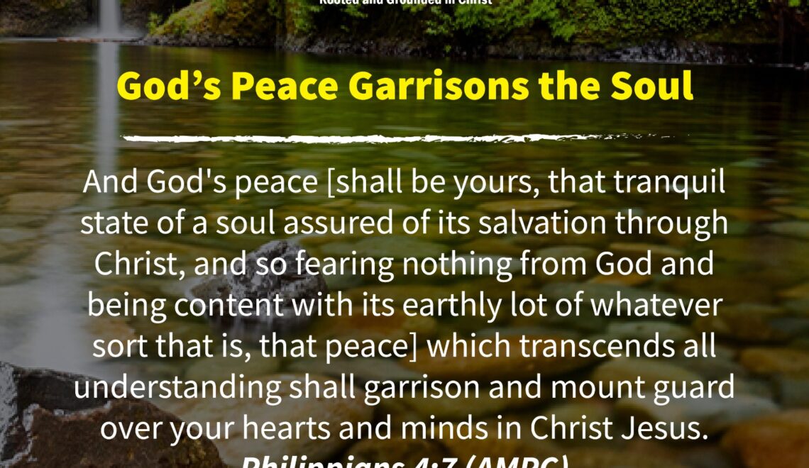 And God’s peace [shall be yours, that tranquil state of a soul assured of its salvation through Christ, and so fearing nothing from God and being content with its earthly
