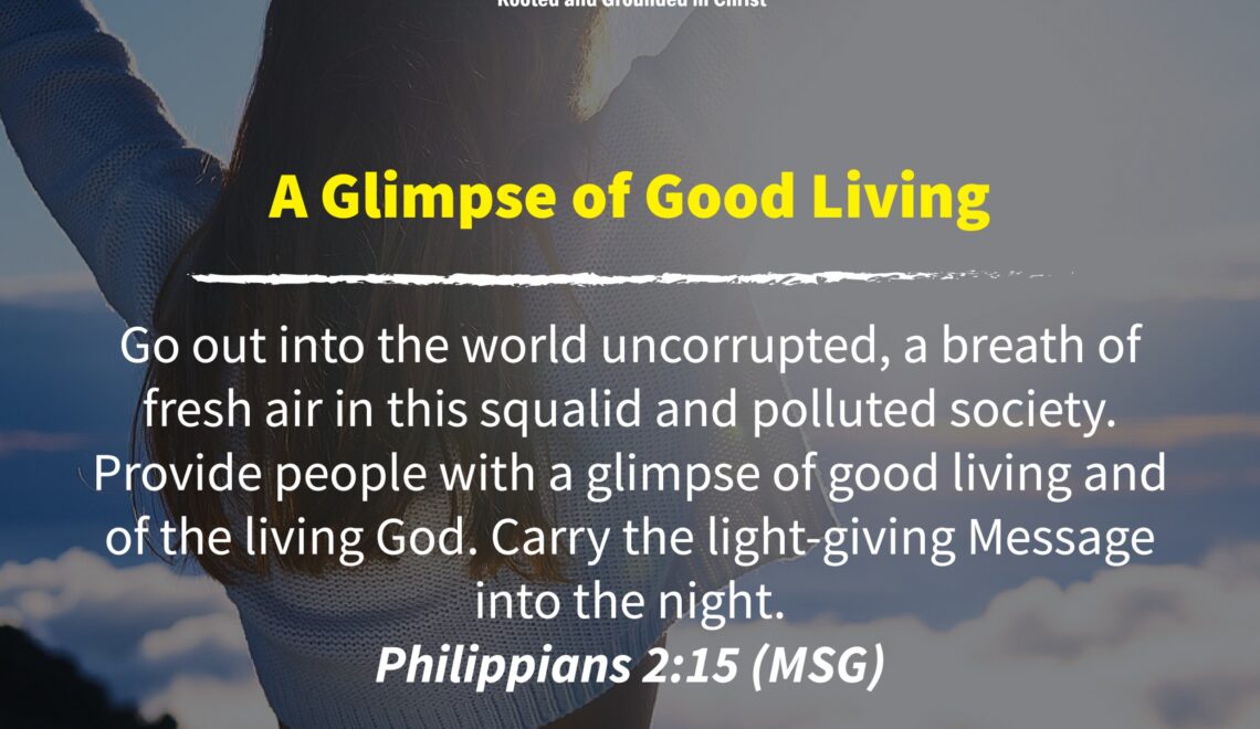 Go out into the world uncorrupted, a breath of fresh air in this squalid and polluted society. Provide people with a glimpse of good living and of the living God.