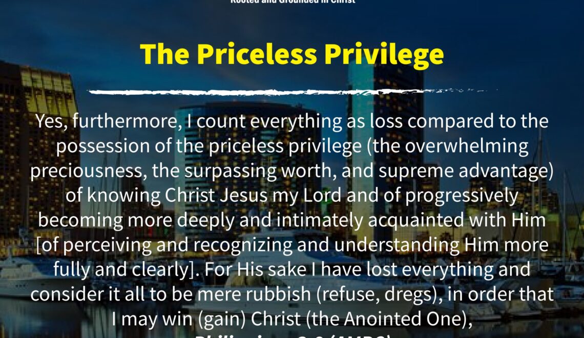 Yes, furthermore, I count everything as loss compared to the possession of the priceless privilege (the overwhelming preciousness, the surpassing worth, and supreme advantage) of knowing Christ Jesus my Lord