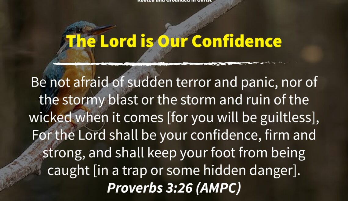 Proverbs 3:26 (AMPC) Be not afraid of sudden terror and panic, nor of the stormy blast or the storm and ruin of the wicked when it comes [for you will