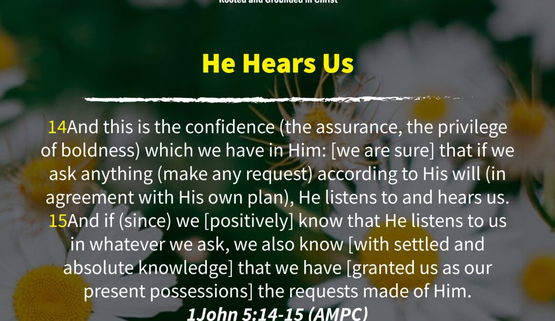 1John 5:14-15 (AMPC) 14And this is the confidence (the assurance, the privilege of boldness) which we have in Him: [we are sure] that if we ask anything (make any request)