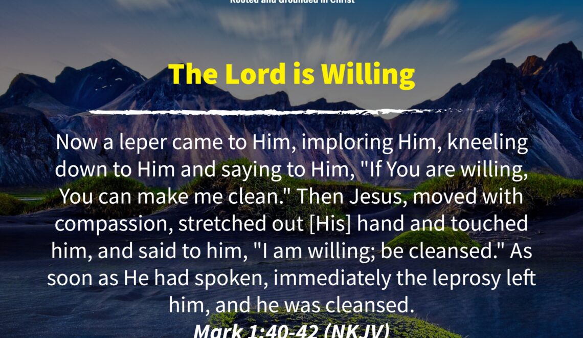 Mark 1:40-42 (NKJV) Now a leper came to Him, imploring Him, kneeling down to Him and saying to Him, “If You are willing, You can make me clean.” Then Jesus,