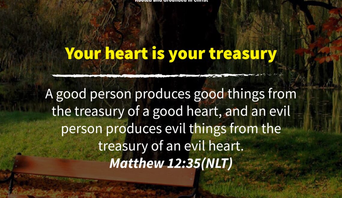 A good person produces good things from the treasury of a good heart, and an evil person produces evil things from the treasury of an evil heart. Matthew 12:35(NLT) Everything