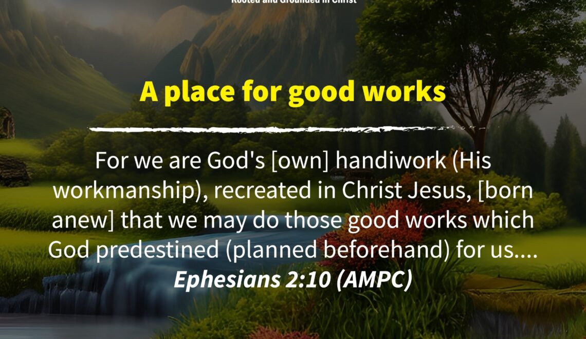 For we are God’s [own] handiwork (His workmanship), recreated in Christ Jesus, [born anew] that we may do those good works which God predestined (planned beforehand) for us…. Ephesians 2:10