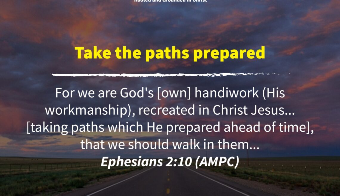 For we are God’s [own] handiwork (His workmanship), recreated in Christ Jesus… [taking paths which He prepared ahead of time], that we should walk in them… Ephesians 2:10 (AMPC) You