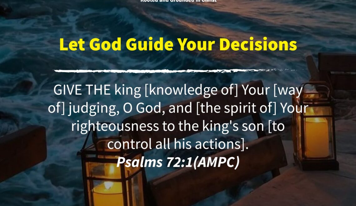 GIVE THE king [knowledge of] Your [way of] judging, O God, and [the spirit of] Your righteousness to the king’s son [to control all his actions]. Psalms 72:1(AMPC) This Psalm