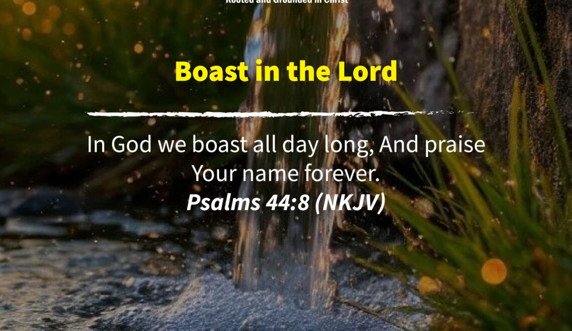 In God we boast all day long, And praise Your name forever. Selah Psalms 44:8 (NKJV) To boast in the Lord is to attribute our very existence to Him. It