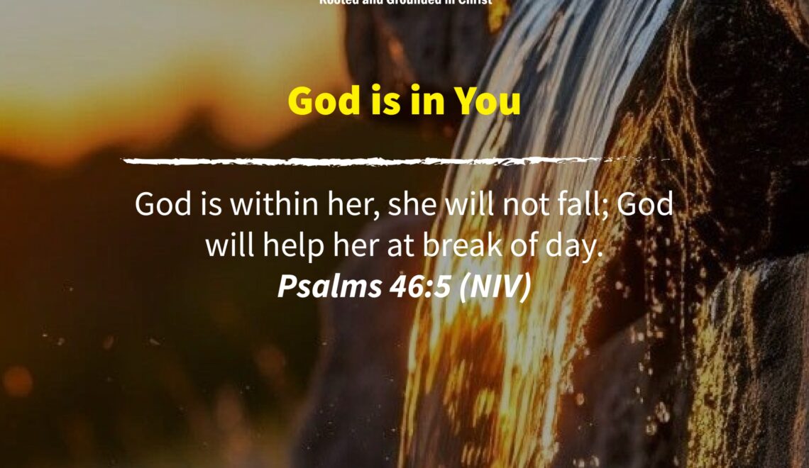 God is within her, she will not fall; God will help her at break of day. Psalms 46:5 (NIV) All you will ever need and require for life has its