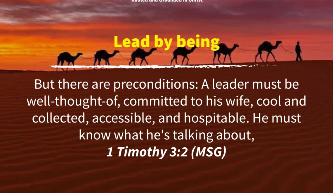 But there are preconditions: A leader must be well-thought-of, committed to his wife, cool and collected, accessible, and hospitable. He must know what he’s talking about, 1 Timothy 3:2 (MSG)