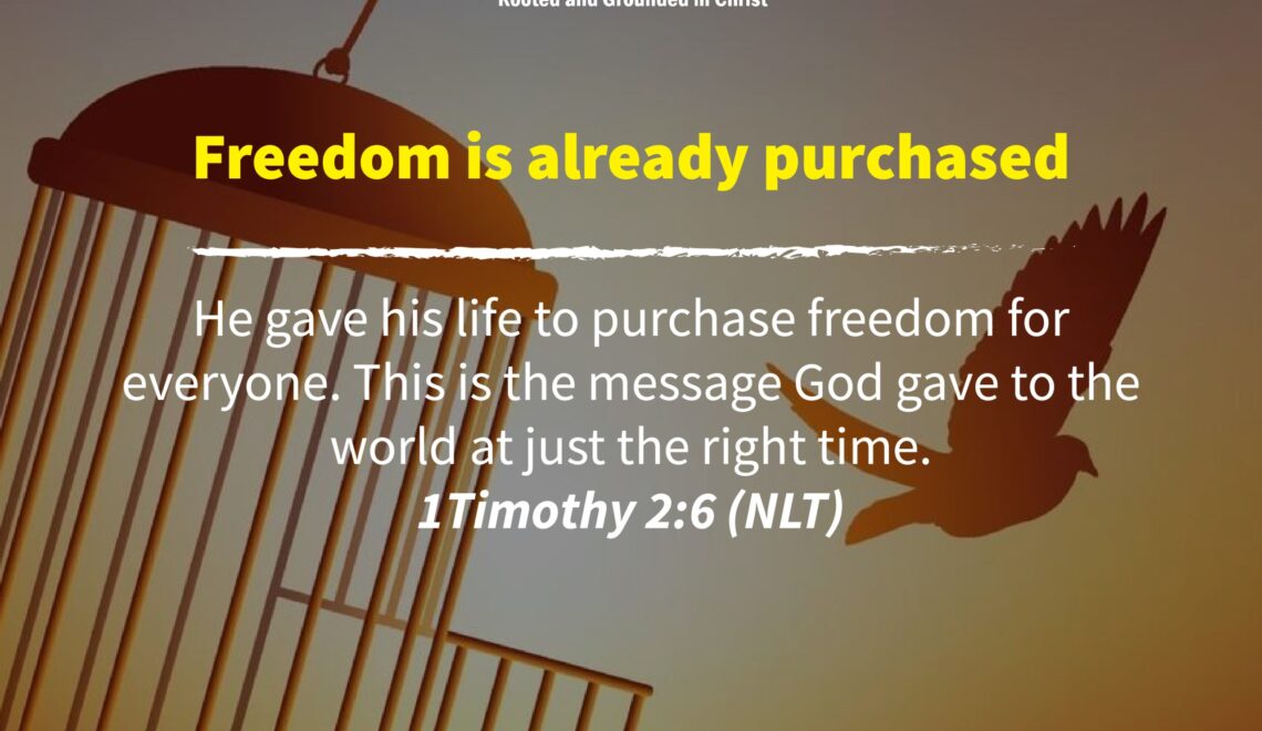 He gave his life to purchase freedom for everyone. This is the message God gave to the world at just the right time. 1Timothy 2:6 (NLT) Many in the world