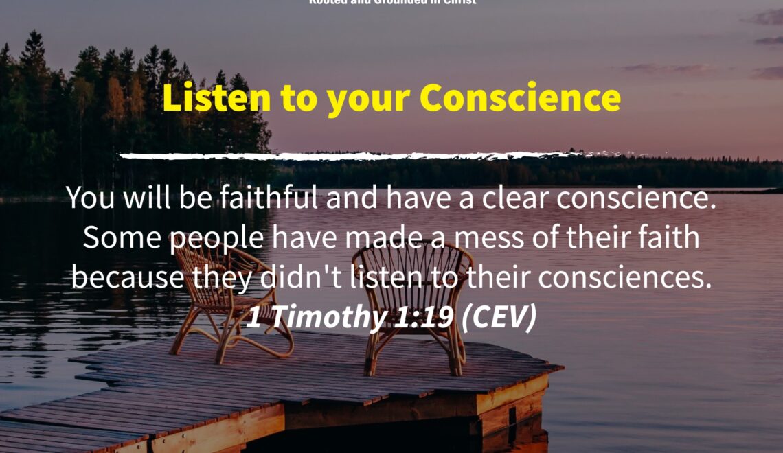 You will be faithful and have a clear conscience. Some people have made a mess of their faith because they didn’t listen to their consciences. 1 Timothy 1:19 (CEV) Every