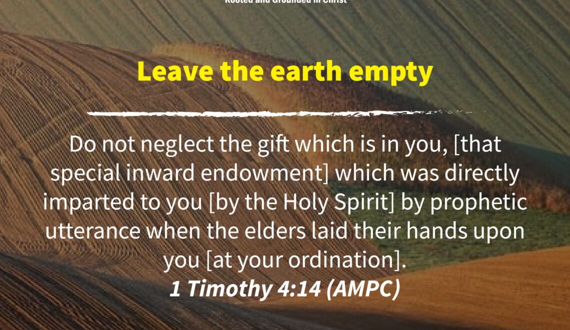 Do not neglect the gift which is in you, [that special inward endowment] which was directly imparted to you [by the Holy Spirit] by prophetic utterance when the elders laid