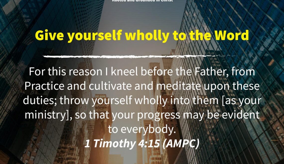Practice and cultivate and meditate upon these duties; throw yourself wholly into them [as your ministry], so that your progress may be evident to everybody. 1 Timothy 4:15 (AMPC) The