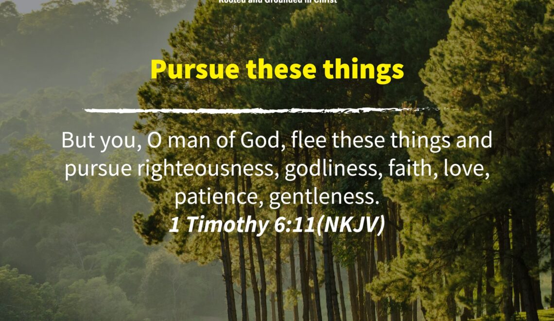 But you, O man of God, flee these things and pursue righteousness, godliness, faith, love, patience, gentleness. 1 Timothy 6:11(NKJV) Many pursue a lot of things they think are what
