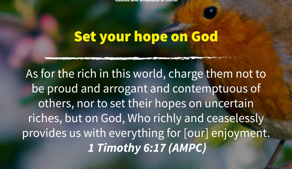 As for the rich in this world, charge them not to be proud and arrogant and contemptuous of others, nor to set their hopes on uncertain riches, but on God,