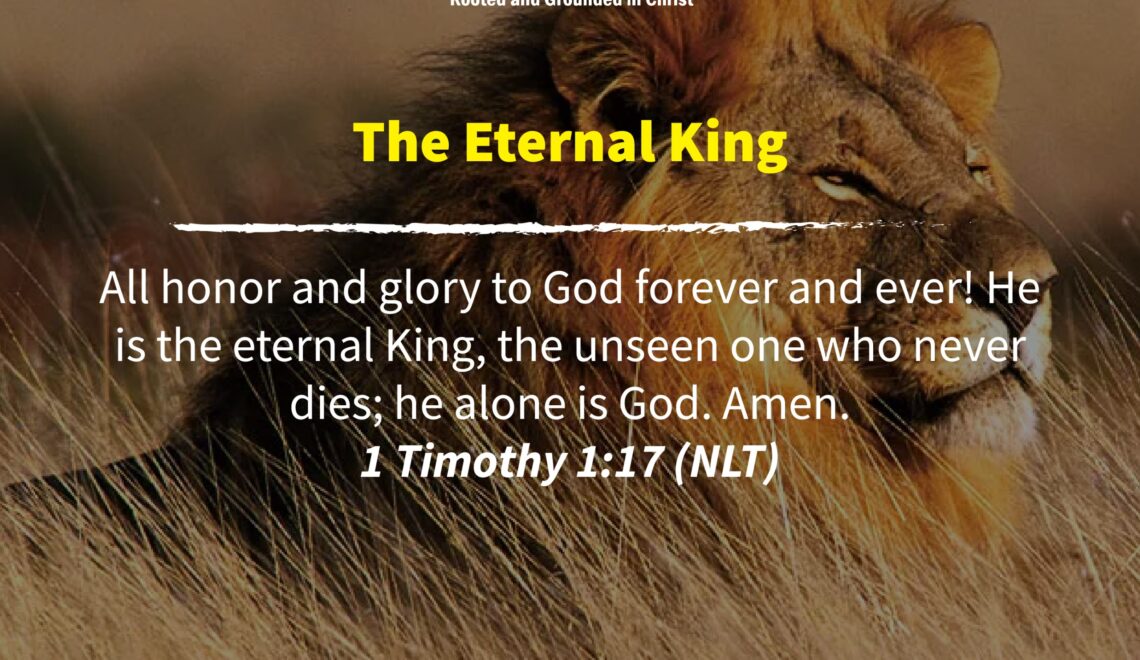 All honor and glory to God forever and ever! He is the eternal King, the unseen one who never dies; he alone is God. Amen. 1 Timothy 1:17 (NLT) Over