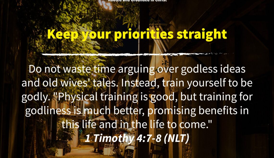 Do not waste time arguing over godless ideas and old wives’ tales. Instead, train yourself to be godly. “Physical training is good, but training for godliness is much better, promising