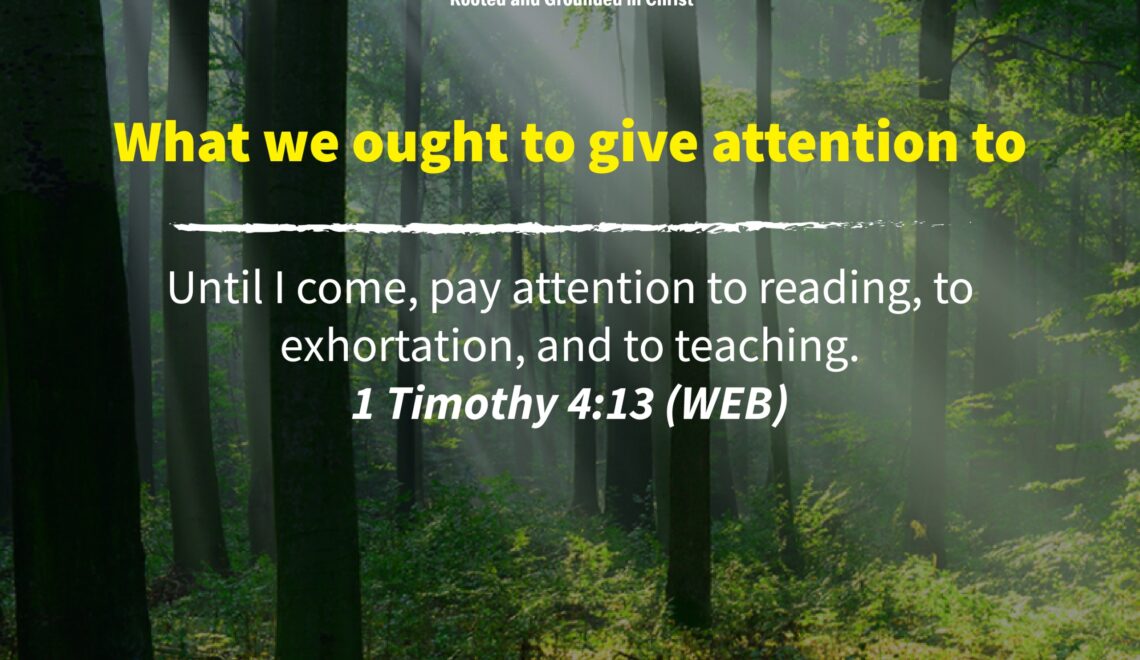 Until I come, pay attention to reading, to exhortation, and to teaching. 1 Timothy 4:13 (WEB) We are to exercise and apply ourselves in the Word of God through these