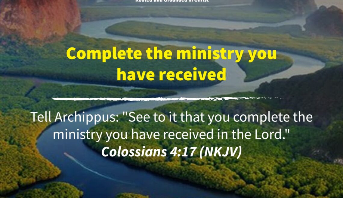 Tell Archippus: “See to it that you complete the ministry you have received in the Lord.” Colossians 4:17 (NKJV) We are first the Lord’s ministry. He ministers to us things