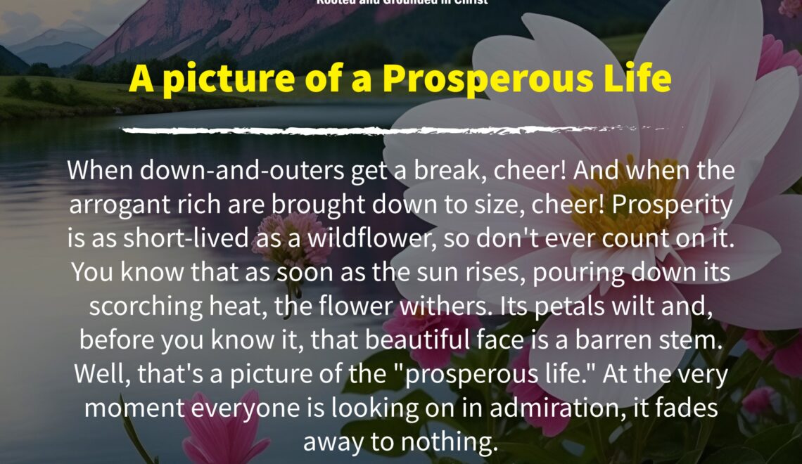 When down-and-outers get a break, cheer! And when the arrogant rich are brought down to size, cheer! Prosperity is as short-lived as a wildflower, so don’t ever count on it.