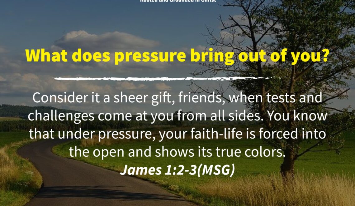 Consider it a sheer gift, friends, when tests and challenges come at you from all sides. You know that under pressure, your faith-life is forced into the open and shows