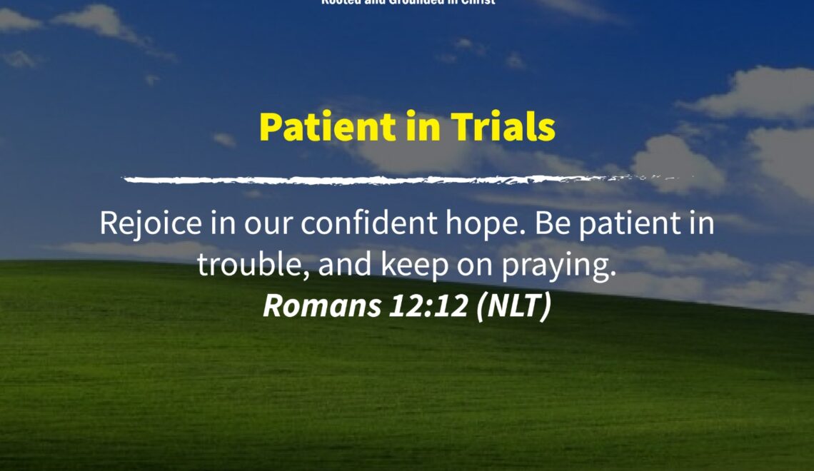 Rejoice in our confident hope. Be patient in trouble, and keep on praying. Romans 12:12 (NLT) We know that trials or trouble do not come from God. They come from