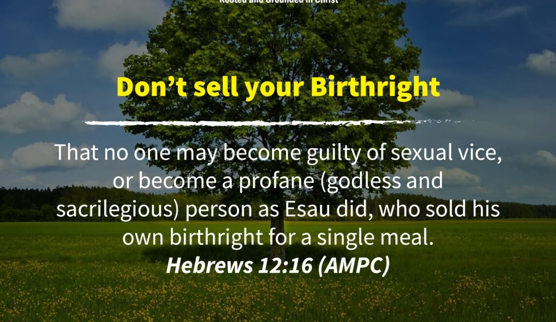 That no one may become guilty of sexual vice, or become a profane (godless and sacrilegious) person as Esau did, who sold his own birthright for a single meal. Hebrews