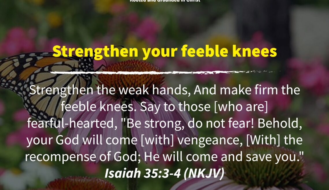 Strengthen the weak hands, And make firm the feeble knees. Say to those [who are] fearful-hearted, “Be strong, do not fear! Behold, your God will come [with] vengeance, [With] the