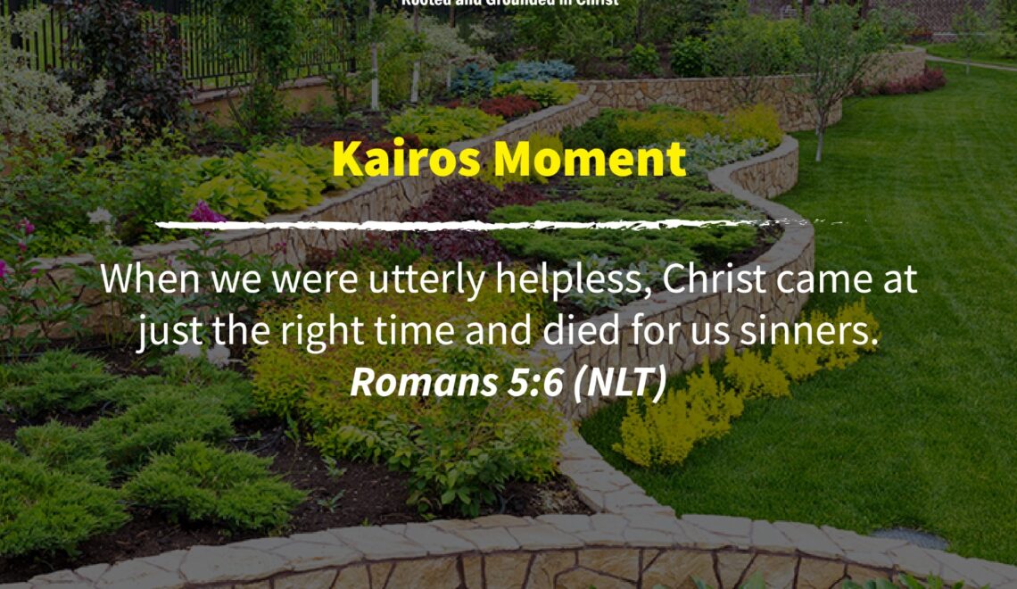 When we were utterly helpless, Christ came at just the right time and died for us sinners. Romans 5:6 (NLT) The Kairos moment is the opportune time, the right season.It’s