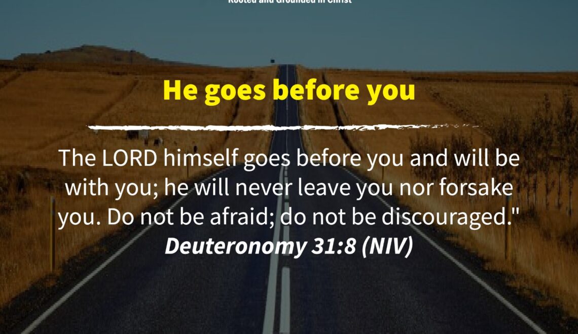 The LORD himself goes before you and will be with you; he will never leave you nor forsake you. Do not be afraid; do not be discouraged.” Deuteronomy 31:8 (NIV)