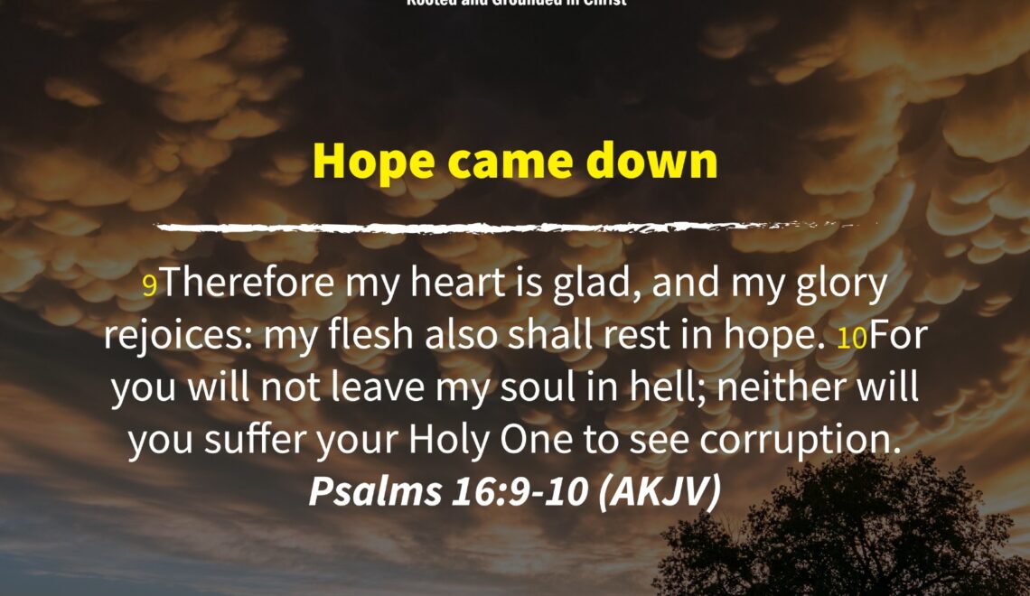 9Therefore my heart is glad, and my glory rejoices: my flesh also shall rest in hope. 10For you will not leave my soul in hell; neither will you suffer your