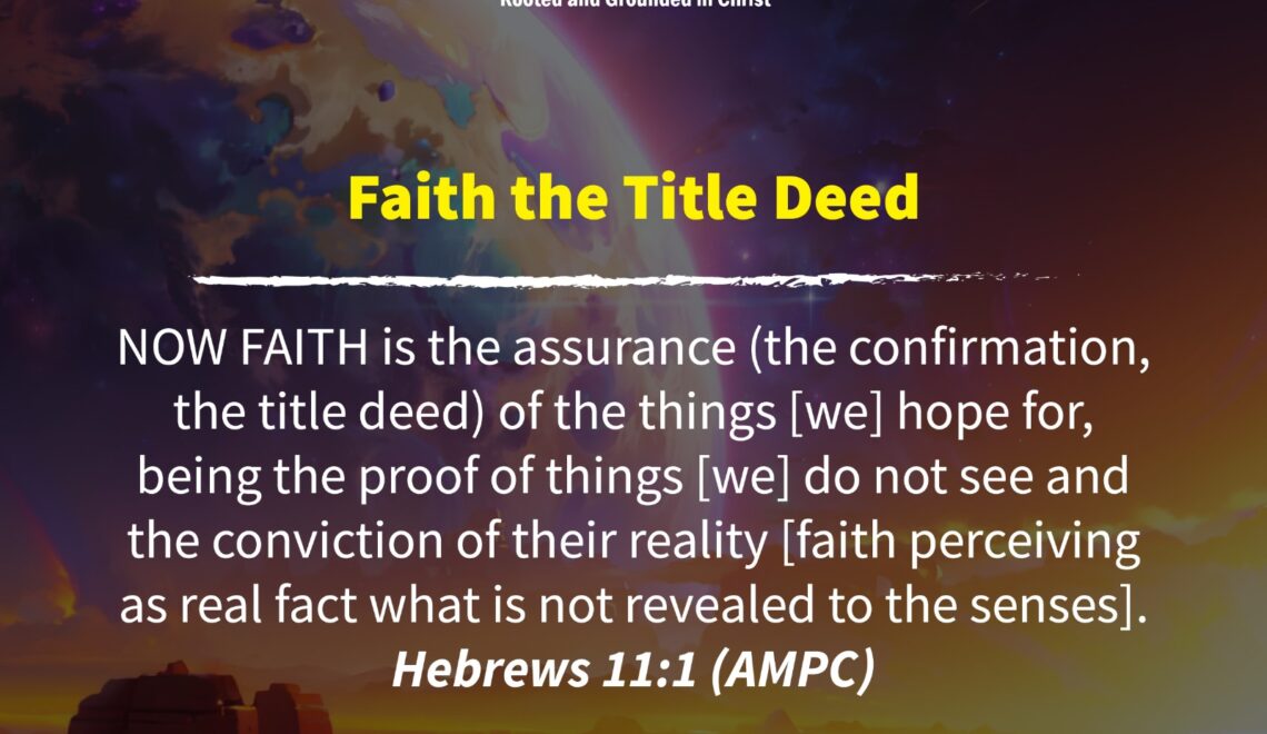 NOW FAITH is the assurance (the confirmation, the title deed) of the things [we] hope for, being the proof of things [we] do not see and the conviction of their