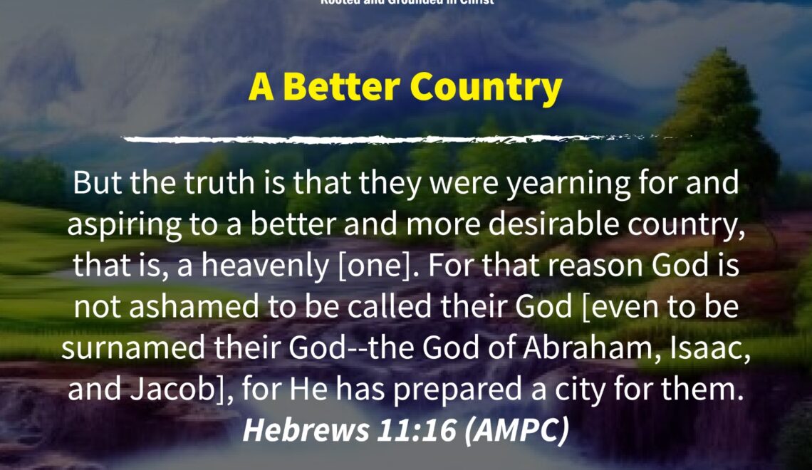 But the truth is that they were yearning for and aspiring to a better and more desirable country, that is, a heavenly [one]. For that reason God is not ashamed