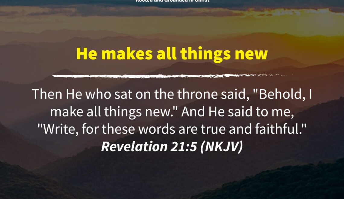 Then He who sat on the throne said, “Behold, I make all things new.” And He said to me, “Write, for these words are true and faithful.” Revelation 21:5 (NKJV)