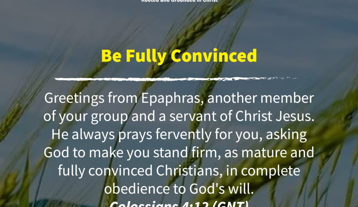 Greetings from Epaphras, another member of your group and a servant of Christ Jesus. He always prays fervently for you, asking God to make you stand firm, as mature and