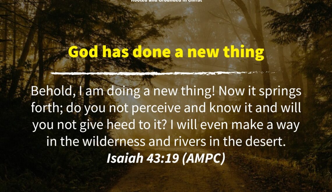 Behold, I am doing a new thing! Now it springs forth; do you not perceive and know it and will you not give heed to it? I will even make