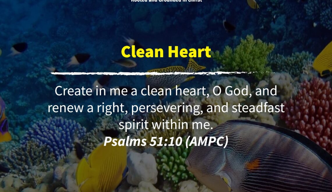 Create in me a clean heart, O God, and renew a right, persevering, and steadfast spirit within me. Psalms 51:10 (AMPC)Clean or right living is a result of a clean